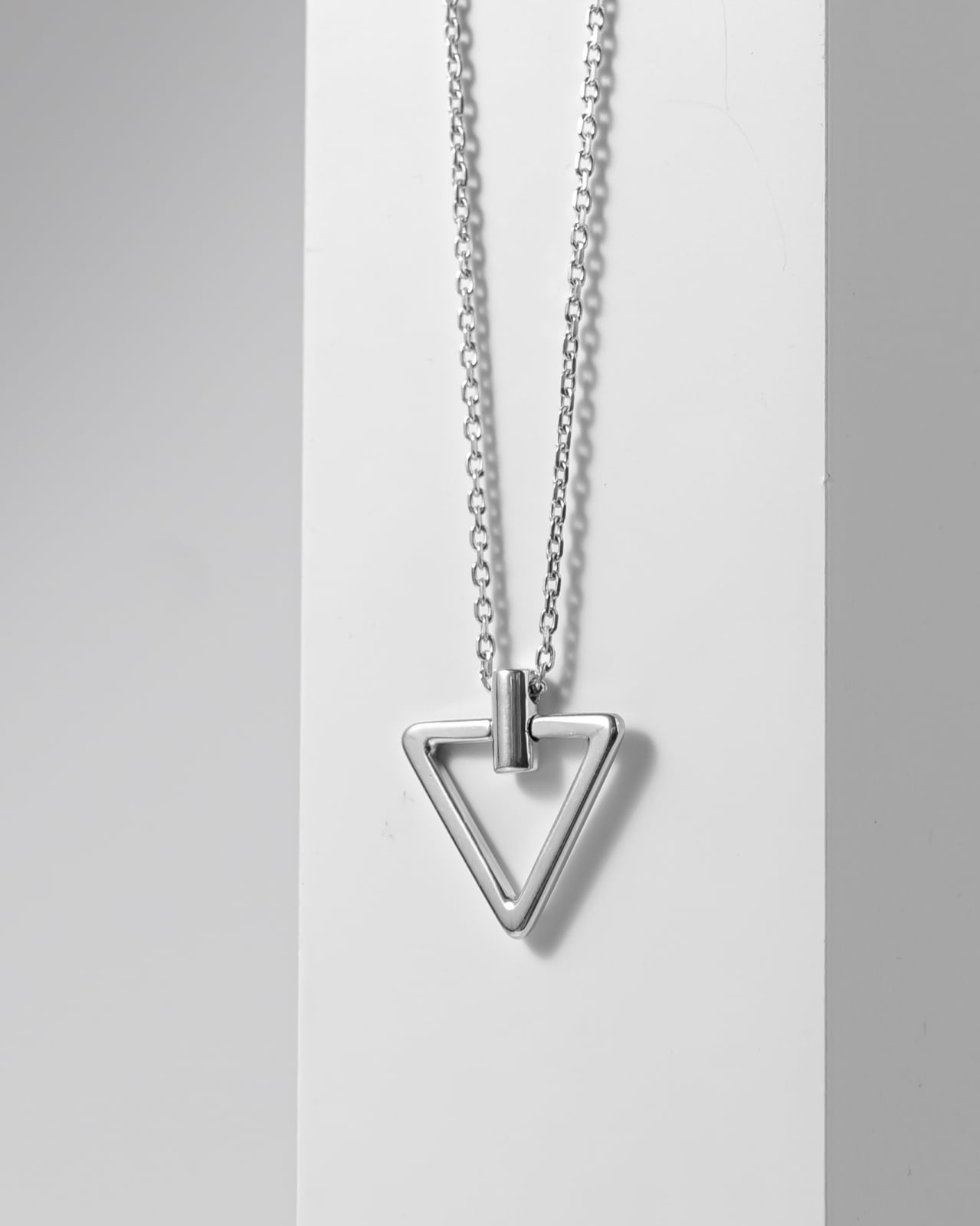 Descopera o nota de stil modern look-ului tau cu pandantivul triunghi. Proiectat cu linii simpliste, acest pandantiv reprezinta mai mult decat o forma geometrica, simbolizeaza putere, echilibru si stabilitate. Perfect pentru accesorizarea tinutelor casual de zi cu zi.